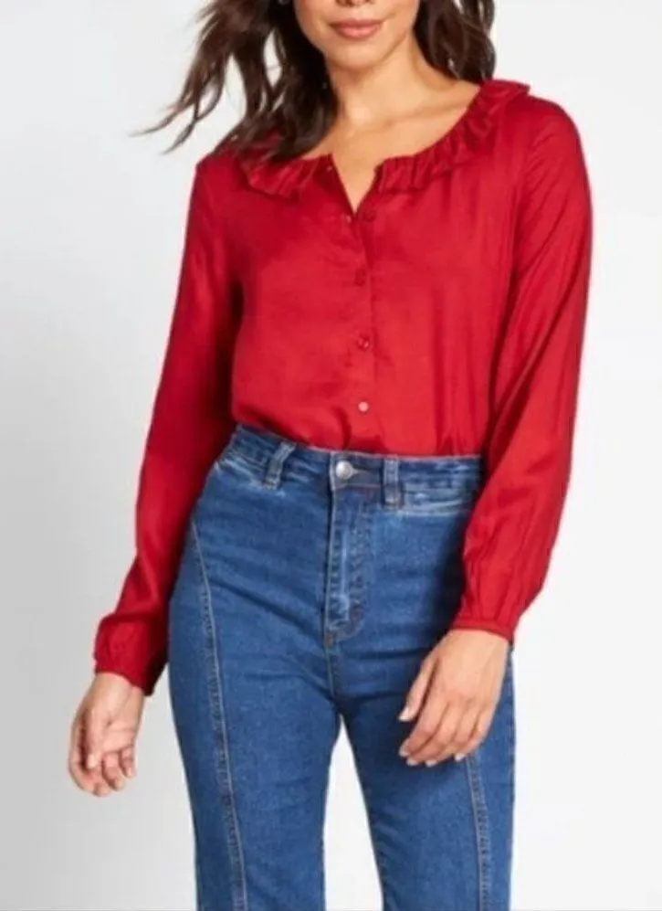Modcloth Company Fantastica Brand Ruffle Collar Blouse The Frill Of It Top Red Small. Button Down Bl... Show more