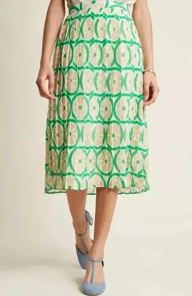 in excellent preowned condition Pleated Citrus print Side zip Lined Approximate measurements Wai... Show more