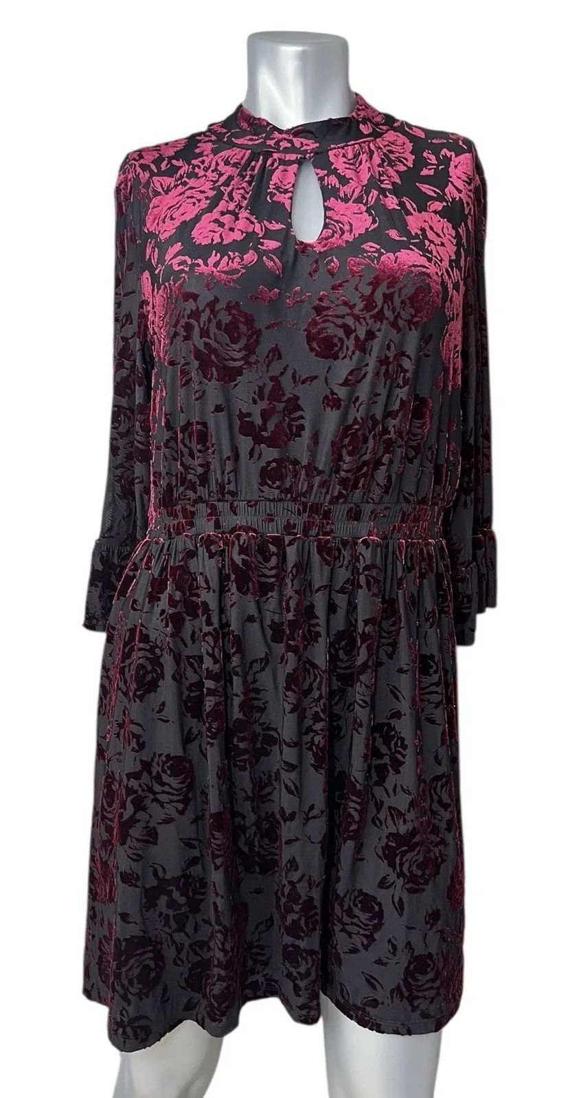 Modcloth Very Visionary Red Floral Velvet Burnout Bell Sleeve Dress Mock turtleneck, key hole, elast... Show more