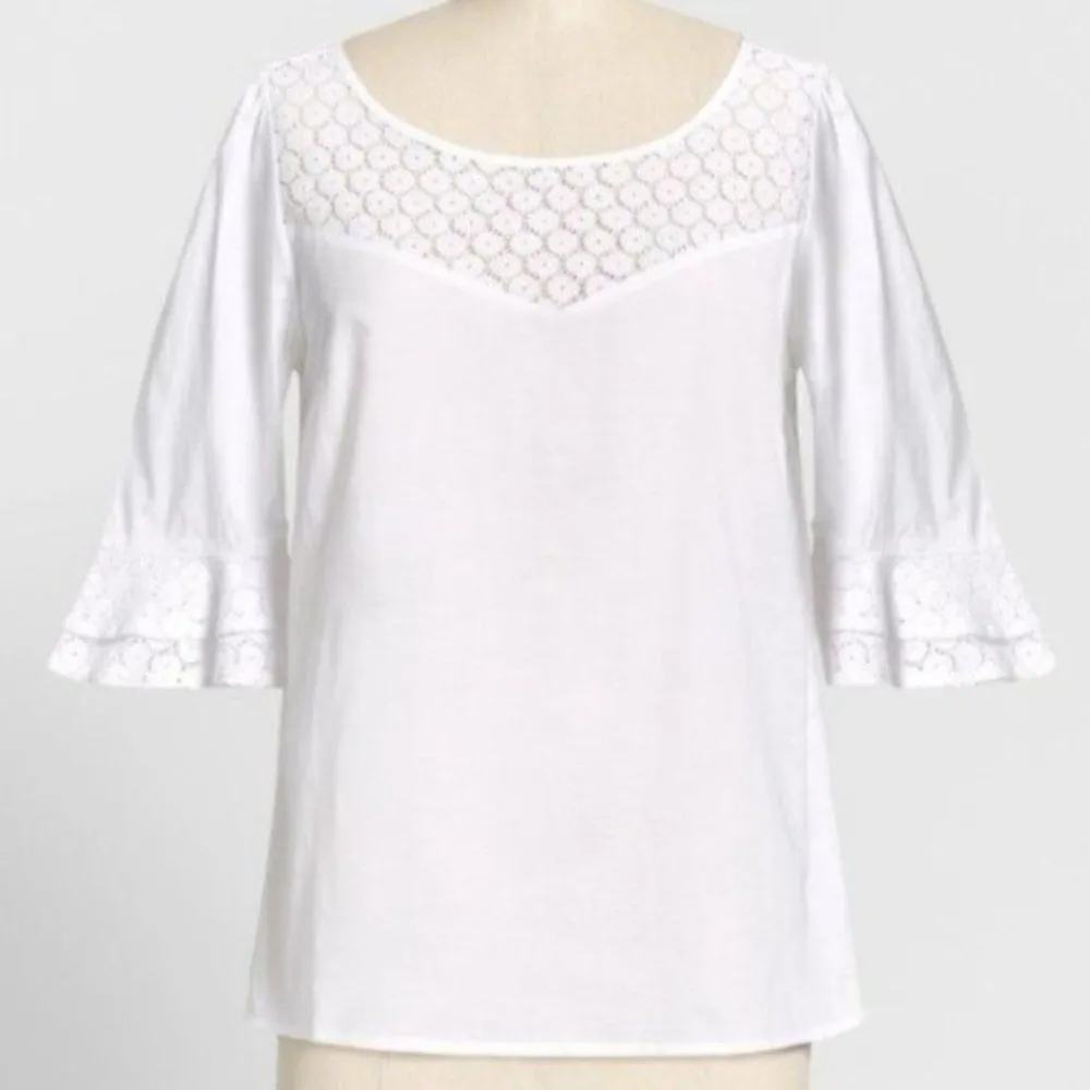 Modcloth It’s The Lace I Can Do Cotton Blouse White Medium. Essential White cotton top. Tiered Ruffl... Show more