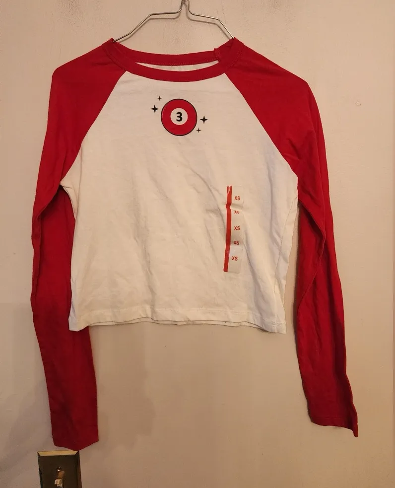 Modern Lux red and white 3 ball long sleeve cropped shirt size womens xs - $13 - From Kim