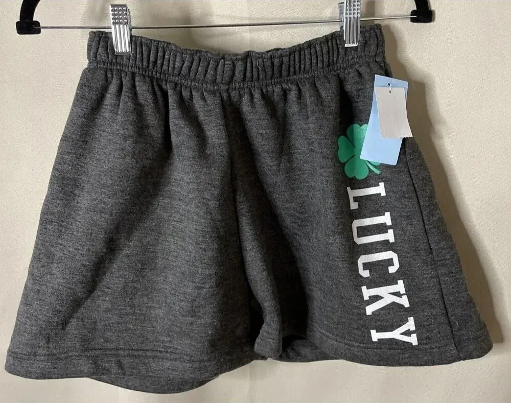 Modern Lux Women’s Size Med Lucky Clover Graphic Sweat‎ Short Charcoal Grey NEW Green - $15 New With Tags - From Andrea