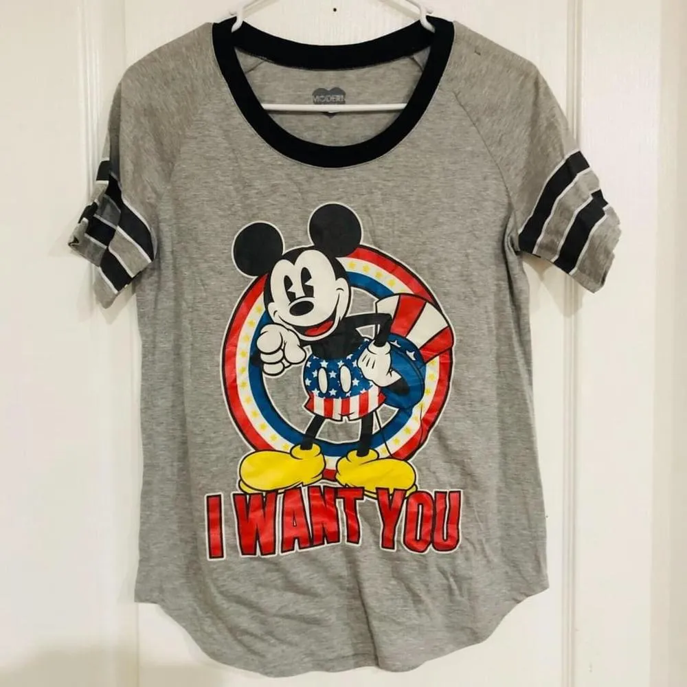 Modern Lux Women's T-Shirt US Flag Mickey Mouse I Want You Gray Size Small Condition: New without Tag, Size written on tag since info was erased Brand: Modern Lux Color: Gray Size: Small Please feel free to reach out to me if you have any questions. Ships 1-3 business days after purchase Comes from a pet free/ smoke free environment