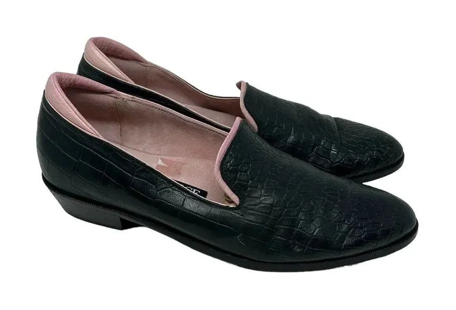 Modern Vice Black & Pink‎ Alligator Croc Leather Loafers Size 37.5 US 7.5 - $79 - From Spin