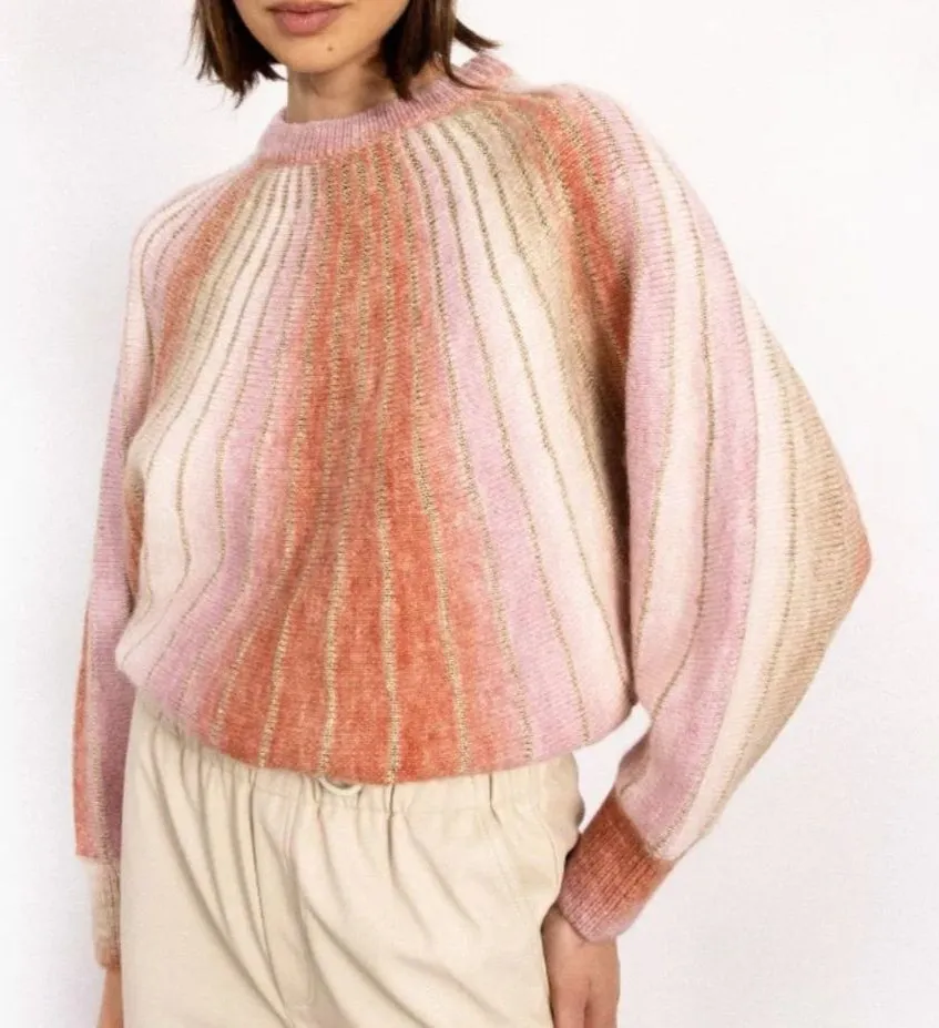 Molly Bracken Batwing Sleeve Space Dye Stripes Sweater Sz S Pink Orange Tan Gold - $30 - From Ami