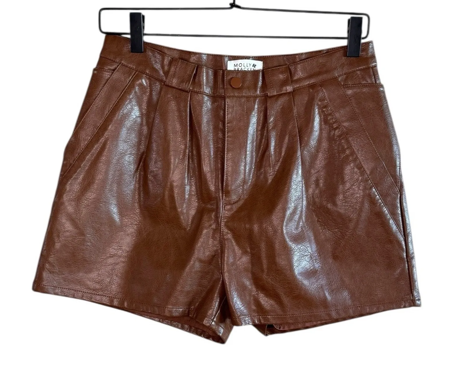 Molly Bracken Women’s Sz Small Faux Leather Shorts Pleated Brown - $32 - From Megan