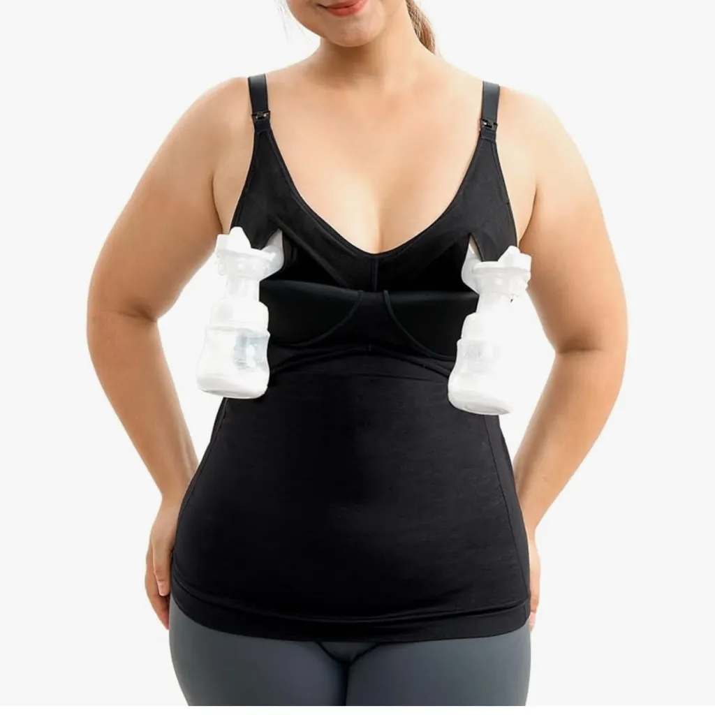 In excellent condition Size large Seamless Comfort and Flexibility: This pumping tank top hands free is made from nylon-spandex fabric and a seamless design, allowing it to move with your body and provide all-day comfort from pregnancy through postpartum as your shape evolves. Universal Pump Compatibility: This pumping tank top is compatible with all major breast pumps, including double and portable options, giving you the freedom to pump wherever you are, whenever needed. Nursing and Pumping Made Easy: For hands-free pumping, simply unclip and pump comfortably. When it’s time to nurse, remove the pumping clip, pull the inner fabric to the side, and move your breast out to feed. Streamline Your Wardrobe: Tired of switching between bras and tanks? This 2-in-1 pumping tank top features a built-in bra with fixed padding, helping you simplify your wardrobe by eliminating extra layers, so you can feel confident and comfortable in one simple piece. Stylish V-Neck with Crossable Straps: This pumping & nursing tank top features a flattering V-neck design that’s perfect for layering, with adjustable crossable straps for added support, making it easy to look and feel great while caring for your baby.