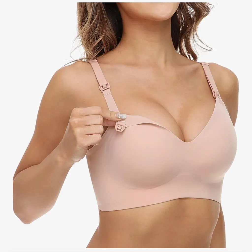 Experience comfort and convenience with this seamless nursing bra. Designed in a versatile nude colo... Show more