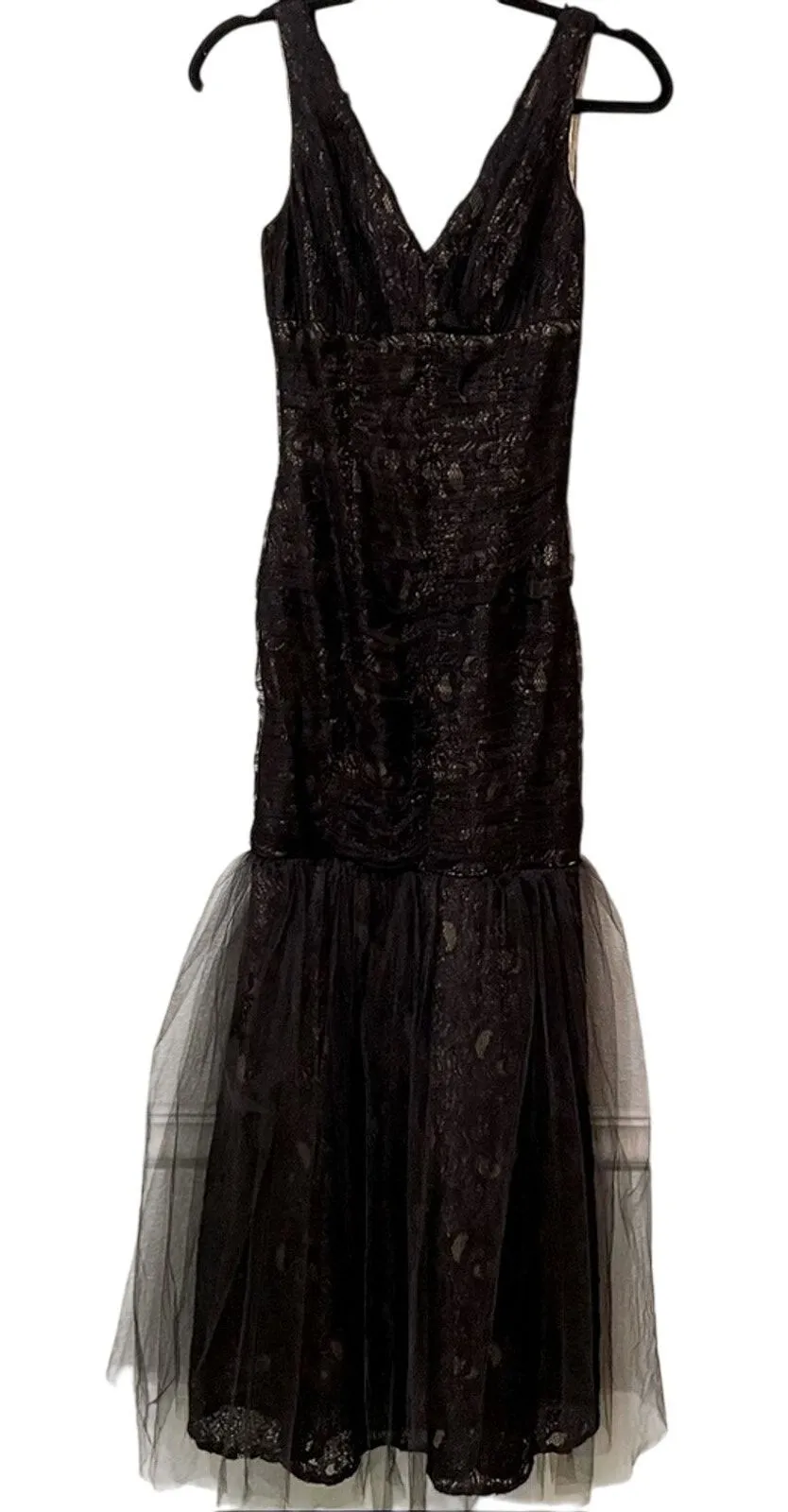 Monique Lhuillier Black Lace Sleeveless Mermaid Dress Formal 0 Preowned in excellent condition Formal prom homecoming bridesmaid mother of the bride wedding dressy special occasion OSB2