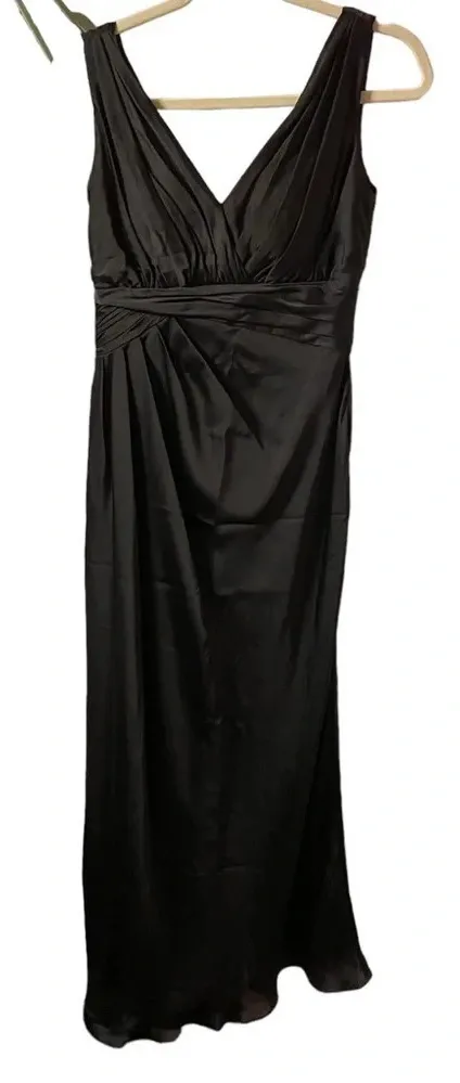 MONIQUE LHUILLIER BRIDESMAIDS BLACK SATIN V-NECK GOWN Size 10 - $86 - From Justine