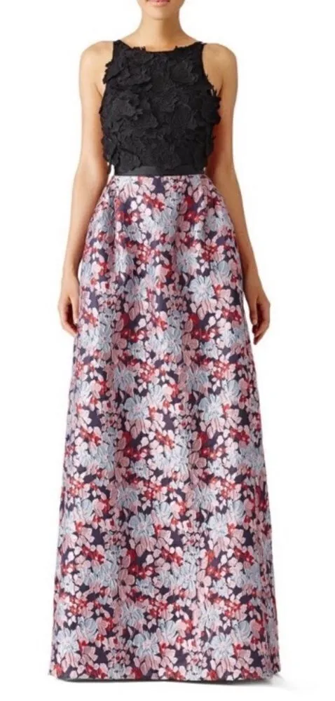 Monique Lhuillier Black Multi Long Floral Dress Gown 12 *Great condition. May need pressing prior t... Show more