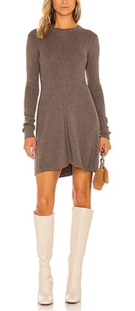 Excellent condition Size S Unlined Cashmere cotton blend This elegant brown knit dress offers a perfect blend of style and comfort. Ideal for any occasion, its soft fabric and flattering fit make it a wardrobe essential. Measurements PTP 15” Length 34”