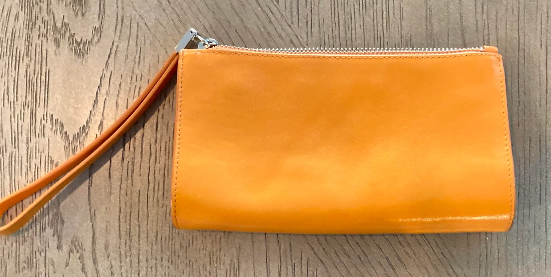 NWOT Monsac leather orange wristlet. Sz 8x5 - $30 - From Karen
