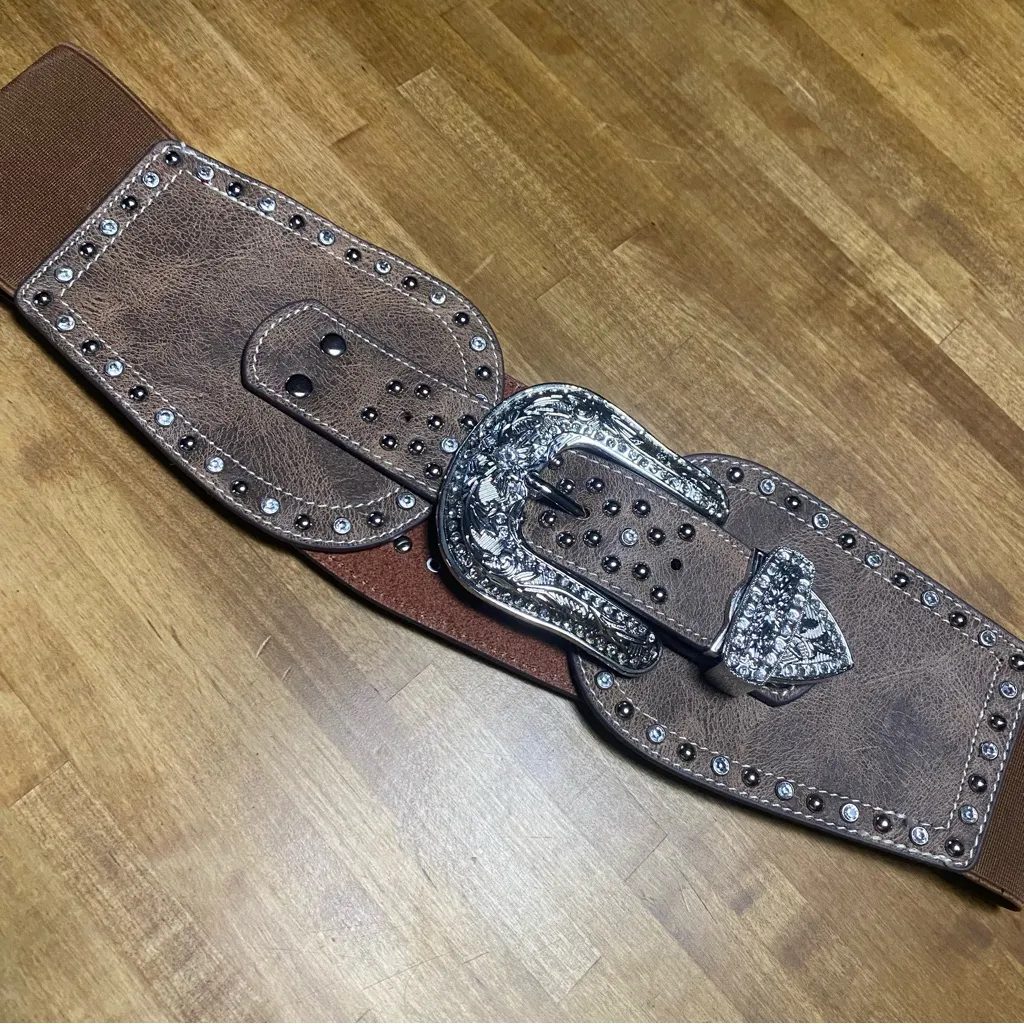 Montana West Brown Belt with Silver/crystals Accents. L 30-32 - $27 - From Alisa