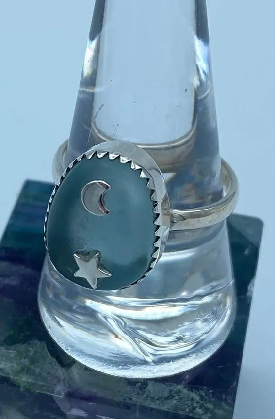 Moon & Star Sea Tumbled Sea Foam Sea Glass Sterling Silver Ring Size 10 Blue - $65 New With Tags - From My Sea Of