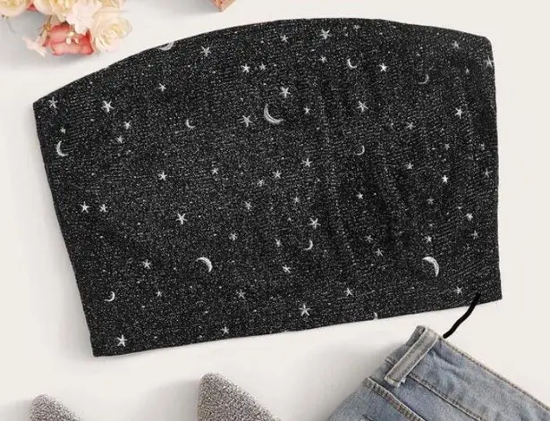 Brand new, never worn, in perfect condition. Super cute crop top black with sliver glitter moon and stars!! Can be worn on its own or on top of a white or black long sleeve. Best fits size M or bigger bust. Originally paid $30 for this on Curtsy but it does not fit me :(