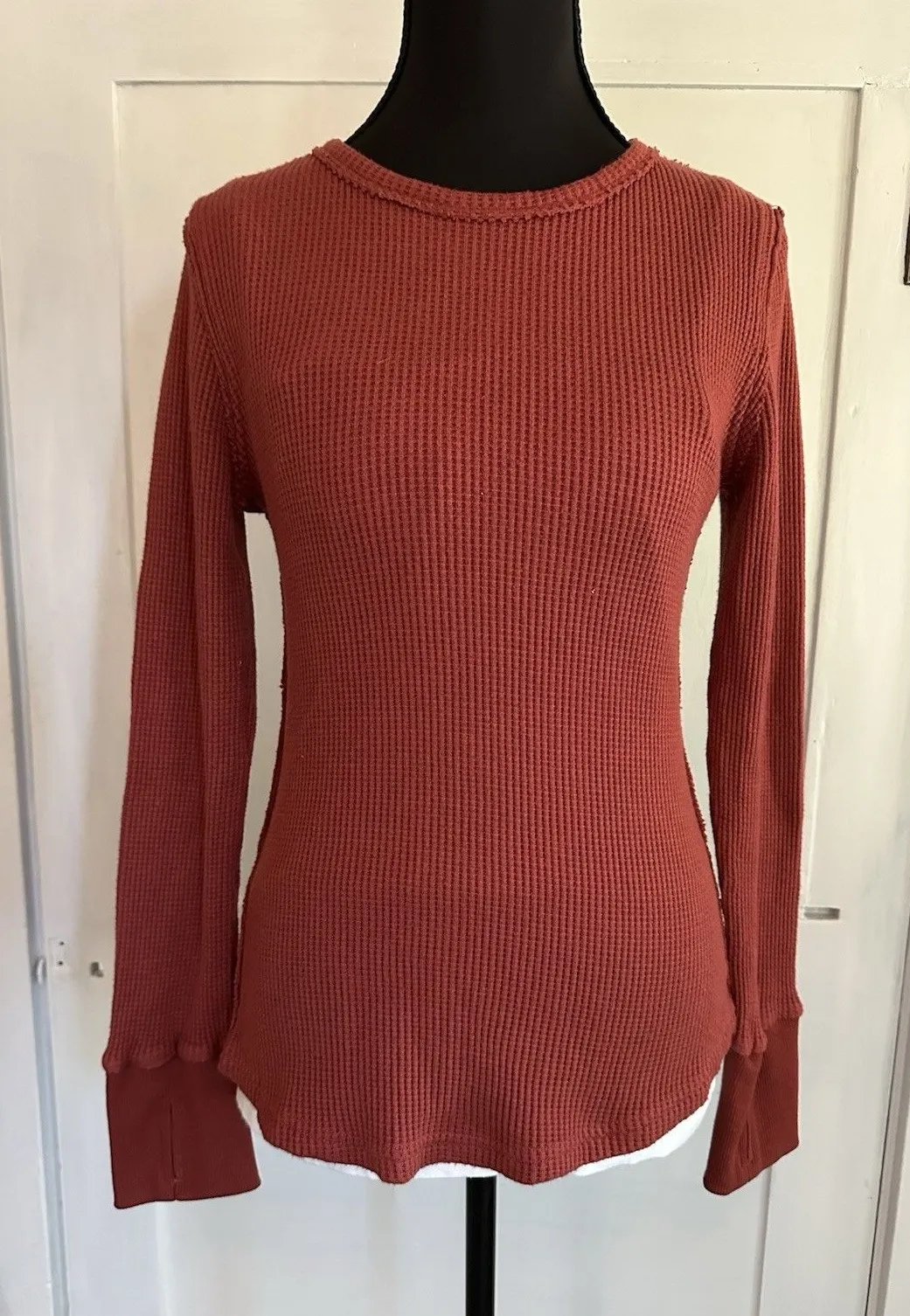Morhuduck Heavy Waffle Knit Thermal Long Sleeve Thumb Holes Top Shirt Woman’s S Red - $13 - From Allison