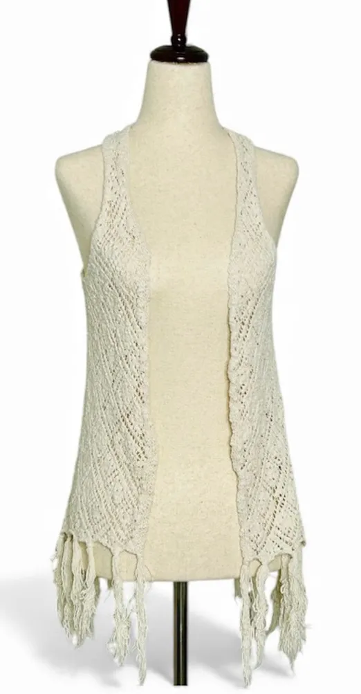 Mossimo Cream Bohemian Crochet Vest with Bottom Trim Fringe size XS - $15 - From Peace