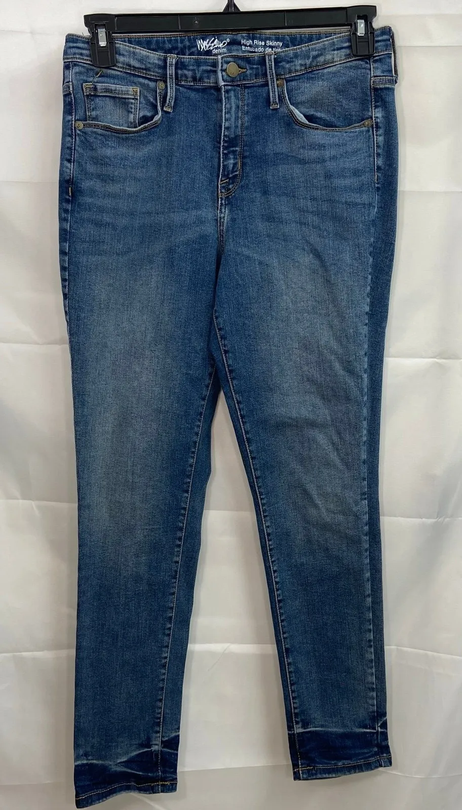 Mossimo women's blue medium wash power stretch high rise skinny denim jeans Size 12 In good used co... Show more