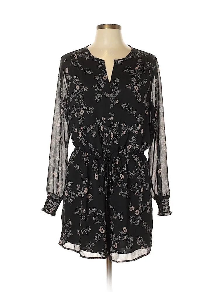 Super cute floral romper Black floral pattern with full lining, Long sheer sleeves -Like new condit... Show more