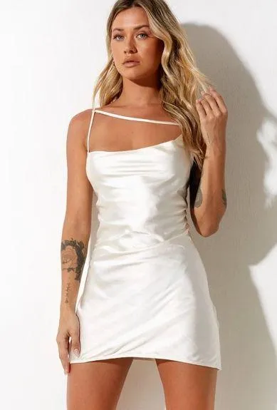 Bring some glam to your next night out 'fit with the Iza dress. In a satin ivory it features an a-li... Show more