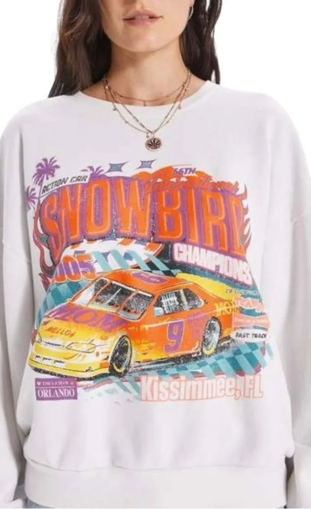 MOTHER Denim Drop Square Racing Graphic Cotton White Crewneck Sweatshirt XS Very gently preloved,... Show more