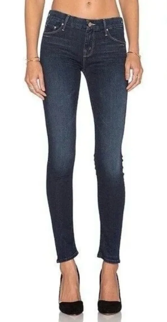 These MOTHER skinny jeans in a rich blue hue offer a sleek and polished look. Crafted with a slight stretch, they provide a comfortable fit that tapers elegantly from hip to ankle. Perfect for versatile styling, these jeans are a wardrobe essential. Size 26 Waist 14” Length 28 1/2”