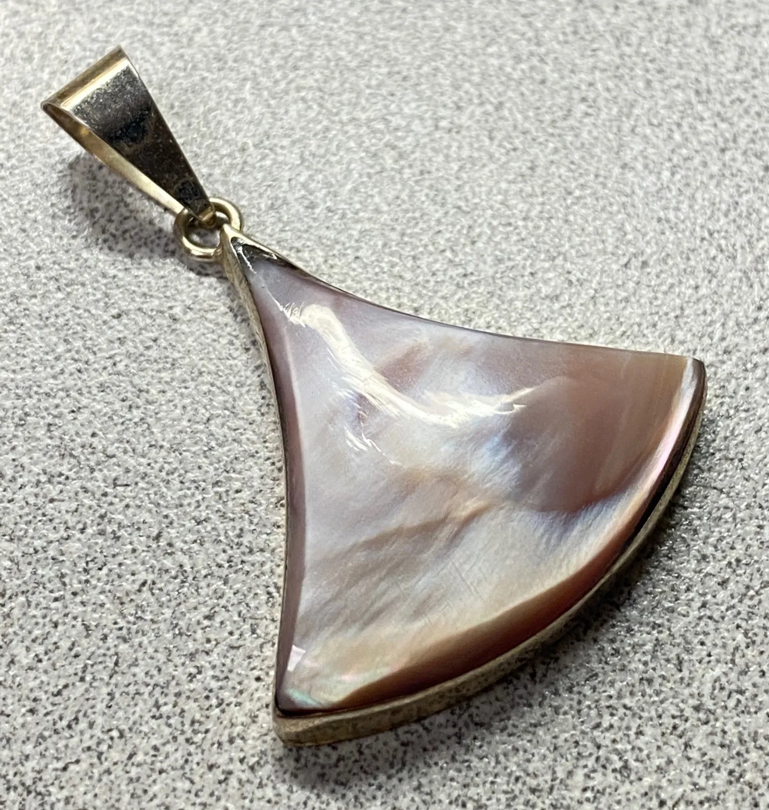 Preloved in excellent condition Please see all photos for close up details and measurements. Style: Pendant, Statement Type: Pendant Theme: Beach, Vacation Main Stone Color: Multicolor Pendant Shape: Asymmetrical Metal: Silver Secondary Stone: Shell Main Stone: Shell Material: Shell Base Metal: Silver Pendant/Locket Type: Charm Main Stone Shape: Cabochon Main Stone Creation: Natural Setting Style: Bezel Keywords: sterling silver, mother of pearl, gemstone, pendant, fan shape, boho, chic, iridescent, shimmering, unique, elegant, oceanic, beachwear