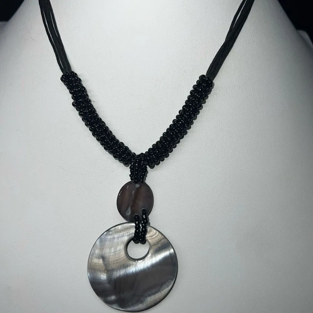 Mother of‎ Pearl and Seed Beads on Leather Cord Necklace Black - $20 - From A Little