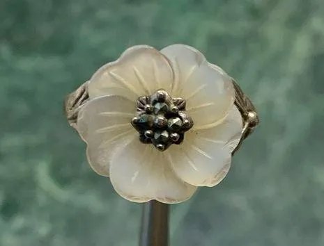Mother Of Pearl Carved Flower Ring Marcasite Stering Silver Thailand SX Size 8.5 - $49 - From Ashley
