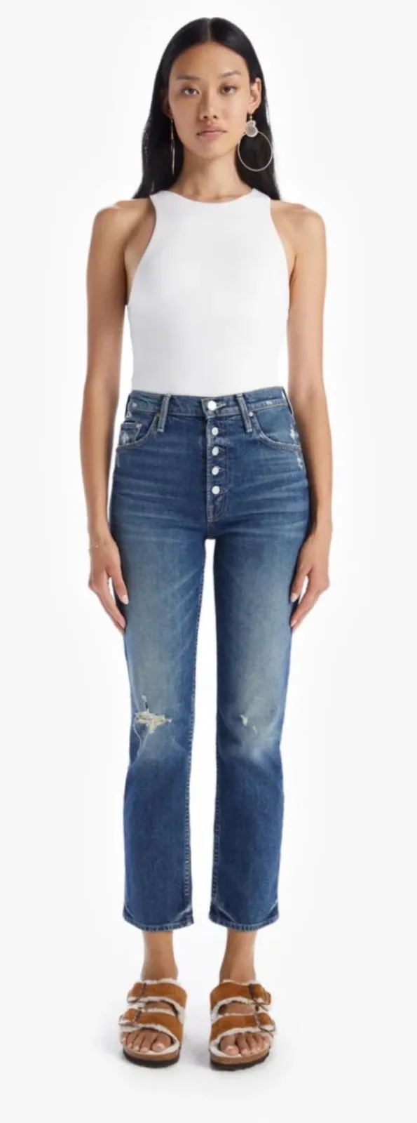 MOTHER Superior The Pixie Tomcat Ankle Jeans in born to bite. Size 27. Button fly. Intentional distressing. Excellent used condition Style: Straight Department: Women Fabric Wash: Medium Waist Size: 27 in Accents: Button Type: Jeans Features: Distressed, Stretch, Pockets, Comfort Fabric Type: Denim Material: Cotton Blend, Spandex Closure: Button