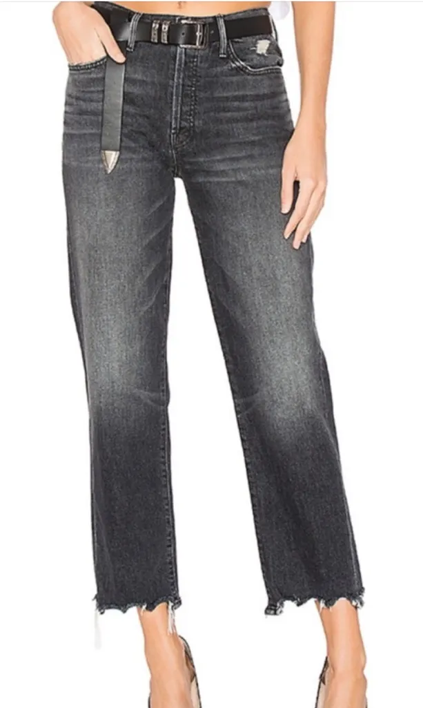 Mother Superior The Saint Chew Of Cats & Kings Distressed Cropped Ankle Raw Hem Straight Leg Jeans (Dark washed gray) Size 25 Great condition Look who's back. MOTHER'S favorite dark grey wash from fall is back again in MOTHER Superior's signature straight fit with a tapered leg - the Saint. She's holier than thou with a chew detail at hem and distress along the pockets. Button Fly Made in Los Angeles. 98% Cotton, 2% Elastane Approximate measurements: Waist: 28” Rise: 10” Inseam: 27”