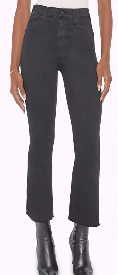 The Mother Hustler Ankle Fray jeans are a bestselling high-rise flare style, crafted in the brand’s signature Not Guilty black wash. Designed with an ankle-length inseam and raw frayed hem. Style effortlessly with sneakers, boots, or heels for year-round wear. Reference image shown for fit inspiration. Please view actual photos for condition and details. 📌 Details ✦ MSRP: $228 ✦ Size: 26 (US 2, see images for measurements) ✦ Color: Not Guilty Black Wash ✦ Fit: High-rise flare, ankle length with raw hem ✦ Features: Frayed ankle hem, zip fly, high-rise, 5-pocket design ✦ Made in USA ✦ Style # 1117-180 | Cut # 709313 | SKU # 1623 📌 Fabric & Care ✦ 92.5% Cotton, 5% Polyester, 2.5% Elastane ✦ Machine wash cold with like colors; tumble dry low or line dry 📌 Condition ✦ Preowned in good condition ✦ From a smoke-free, dog-friendly home 🐶 ✦ All items carefully stored & packaged