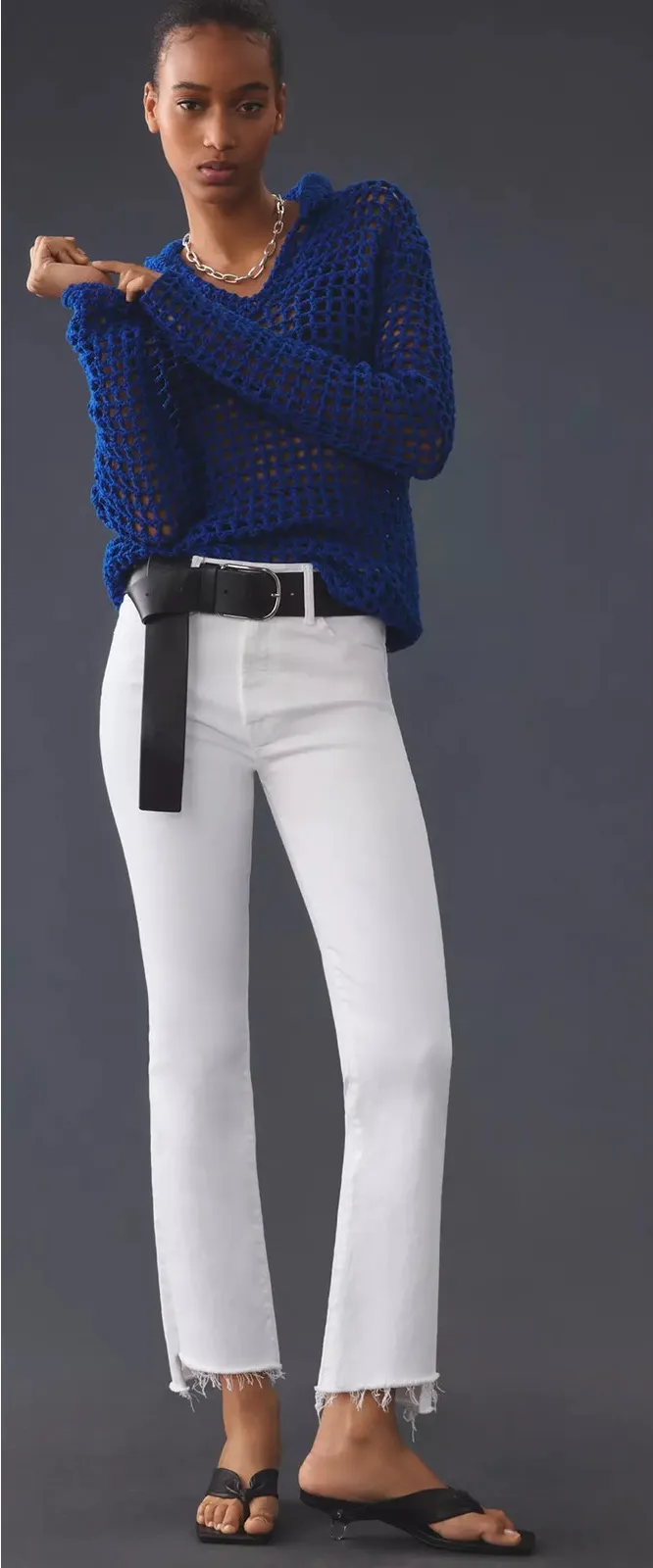 Excellent Condition - no flaws or stains Retails for $228 MOTHER The Insider Crop Step Fray in Fairest Of Them All Size 31 A cropped boot-cut silhouette and a frayed step hem give these high-rise stretch jeans an iconic look. 94% cotton, 4% polyester, 2% elastane Five-pocket styling Zip front Machine wash USA Rise, about 10" Inseam, about 26" Leg opening, about 15 Waist, laid flat side to side: 16”