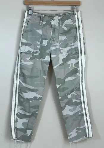 MOTHER The Shaker Chop Crop Fray Camo Pants Jeans - Desert Print Mid Rise Light washed camo with white stripes on the sides. Cropped. Raw hem. Cotton, lyocell, linen blend. Great used condition. No flaws to note. Size: US 26 - tts Rise: 10” Inseam: 24” approx