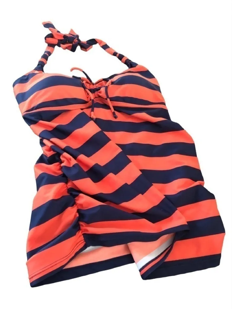 Motherhood Maternity Navy Orange Stripe Tankini Top M Ruched Sides Shelf Bra Size undefined - $15 - From Christine