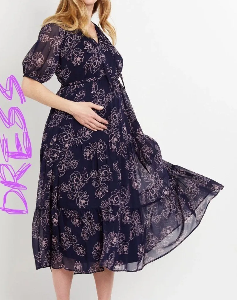 The prettiest dress of the season has arrived. Say hello to our Puff Sleeve Maternity Dress, which is the sweeping and flowy number you need in your closet right now. The chiffon fabric flatters your figure and the maxi length moves with you! Short Sleeve, V-Neck, Maxi Length, Puff Sleeve, Floral Print, polyester Chiffon, Machine Washable, Imported. BRAND: Motherhood Maternity SIZE: Extra Large (Maternity) XL CONDITION: Brand new with tags NWT FABRIC CONTENT: 100% Polyester *All items come from a smoke-free and pet-free home.