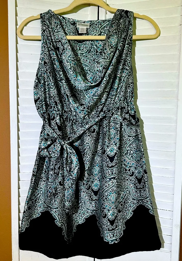 Motherhood Maternity size small Really cute summer dress with a draped front Elastic at high waist for comfort Silky feel, non-stretch polyester Comes with tie belt Imperfect Measurements that I got: Length about 32” Under arms laid flat about 20” Waist laid flat unstretched about 15”