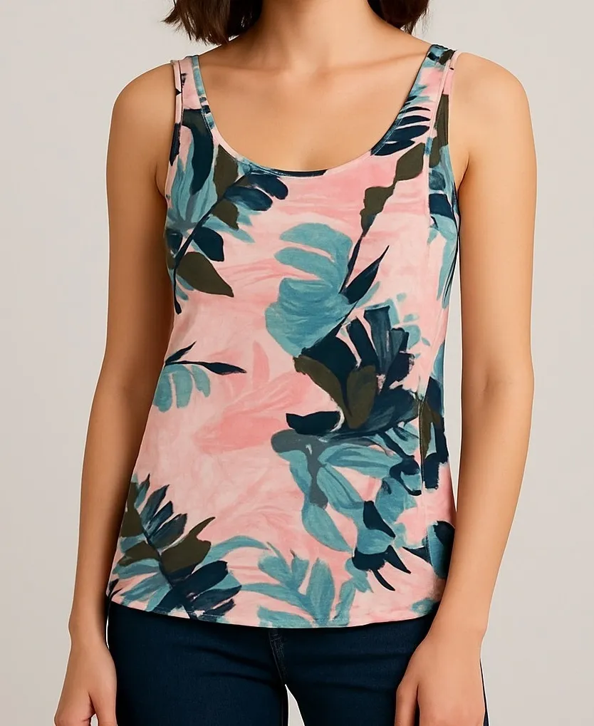 Motherhood Maternity tropical leaf print tank top. This sleeveless top features a scoop neckline and a flattering gathered empire waist. The vibrant print with shades of pink teal and black makes it a versatile piece for casual outings or relaxing at home. Type: Tank Department: Women Style: Camisole Neckline: Scoop Neck Sleeve Length: Sleeveless Sleeve Type: Strappy Sleeve Pattern: Floral Theme: Tropical Features: Lightweight, Unlined Fit: Relaxed Fabric Type: Rayon Occasion: Casual Closure: Pullover Season: Summer, Spring Strap Type: Wide Strap Unit Type: lb Keywords: Maternity, Tropical, Leaf Print, Sleeveless, Scoop Neck, Gathered Waist, Casual, Summer, Vacation, Resortwear, Lightweight, Comfortable