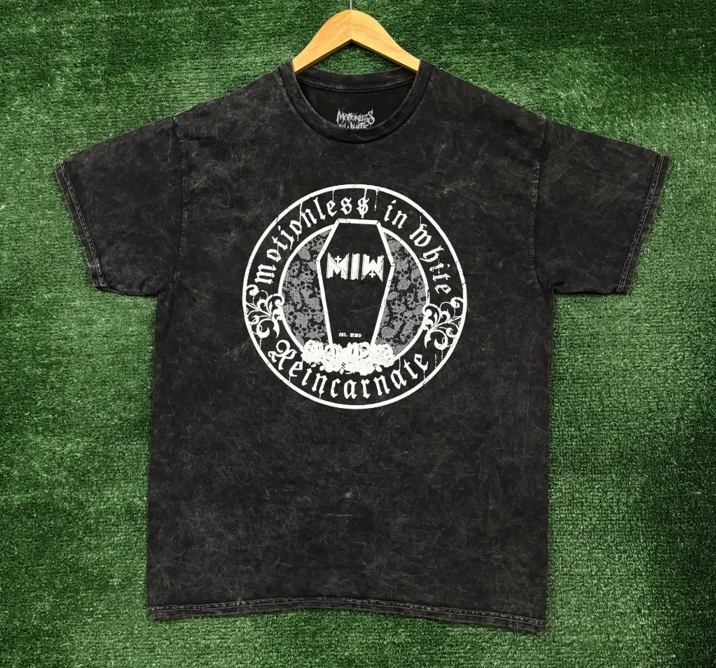Motionless in White Reincarnate Heavy Metal Band Mineral Wash T-Shirt Size Medium measures 22 inches pit to pit 27 inches long Amazing shirt perfect for fans of the legendary band Motionless in White New overstock in great condition