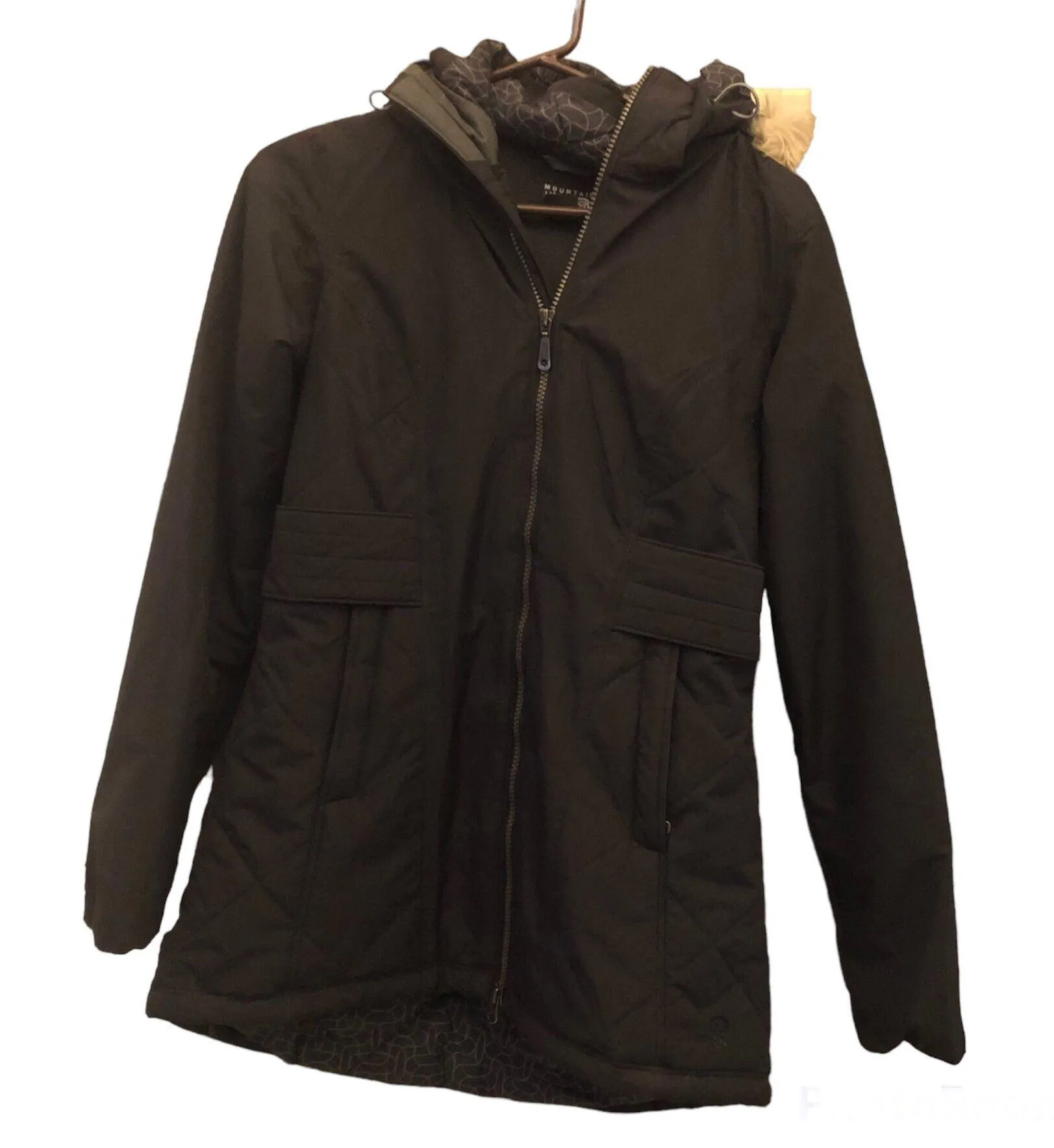 Mountain Hardwear Potrero Faux Fur Parka Jacket Black XS. Full zip with 2 way zippers. Pockets on front. Removable insulated hood. 100% nylon with 100% polyester filling. Good preowned condition. Measurements Pit to pit: 17.5” Back Length: 30” Tags: outdoor, neutral, winter, snow, hiking, warm, lagenlook, comfy