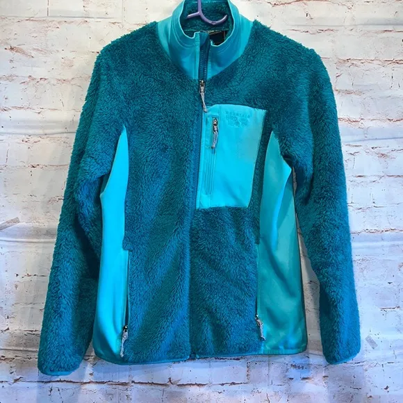 Mountain hardwear jacket in a womens size small. Full zip up with 2 pockets on the front sides and one zip pocket on the chest. Warm and fuzzy in a two tone teal green color. Features: pockets, full front zip, fuzzy Colors: teal green Fabric content: polyester Size: women’s size small Condition: excellent condition Please see pictures for details and condition, any signs of wear are pictured. No rips, stains or holes and comes from a smoke free environment. Bundle with my other items and save on shipping. All items are cross posted. Thank you for shopping my small business!