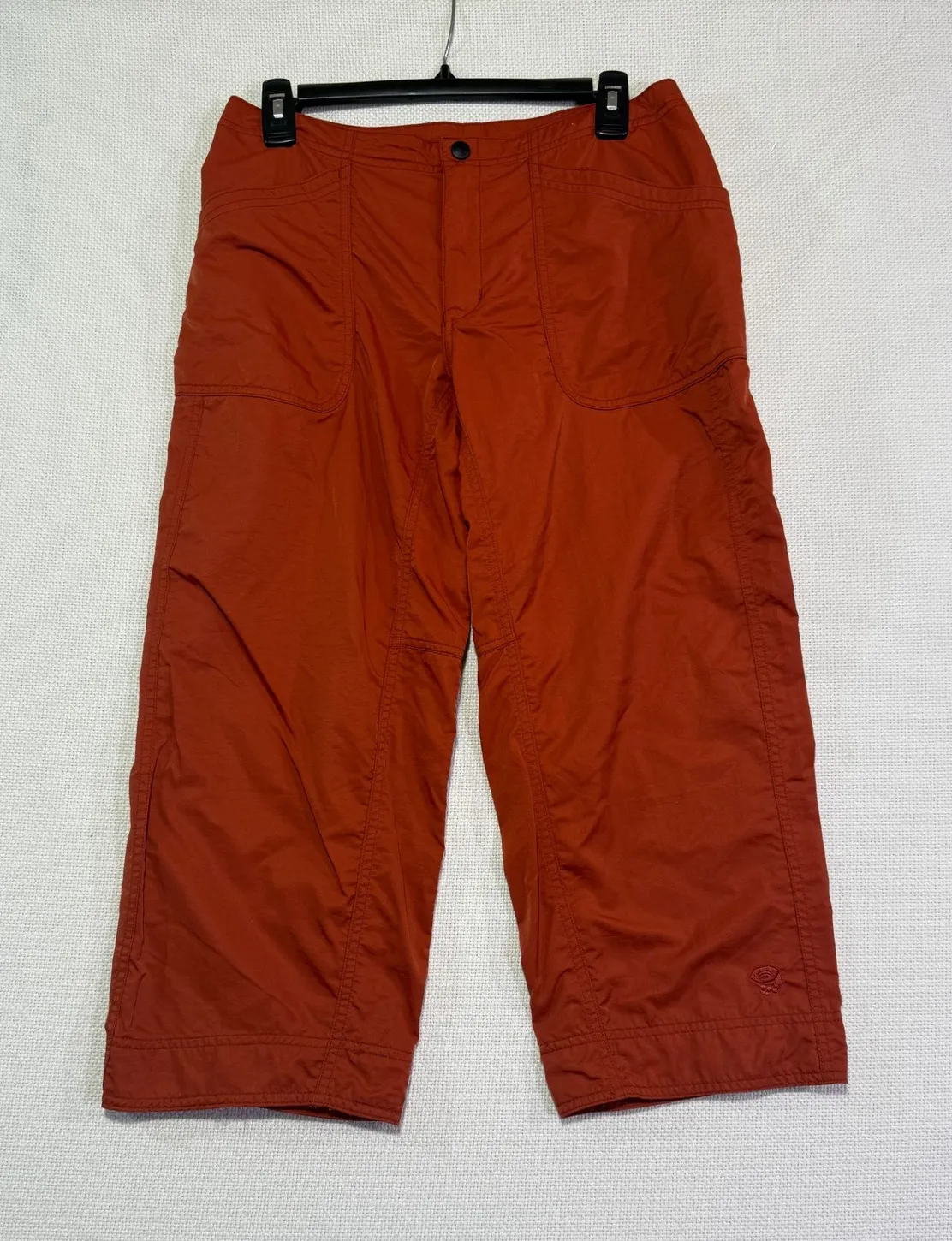 Measurements: • Waist: 30 inches • Inseam: 21.5 inches • Rise: 8.5 inches • Leg Opening: 10 inches Keywords: Mountain Hardwear, women's capris, outdoor pants, hiking pants, cargo capris, athletic pants, travel pants, breathable fabric, quick dry pants, nylon capris, size 6 pants, orange pants, casual pants, activewear