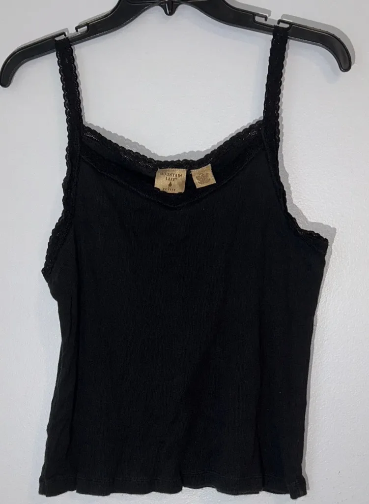 Y2K Black Ribbed Tank Top with Lace‎ Straps lace trim size L petite - $12 - From Kimberly