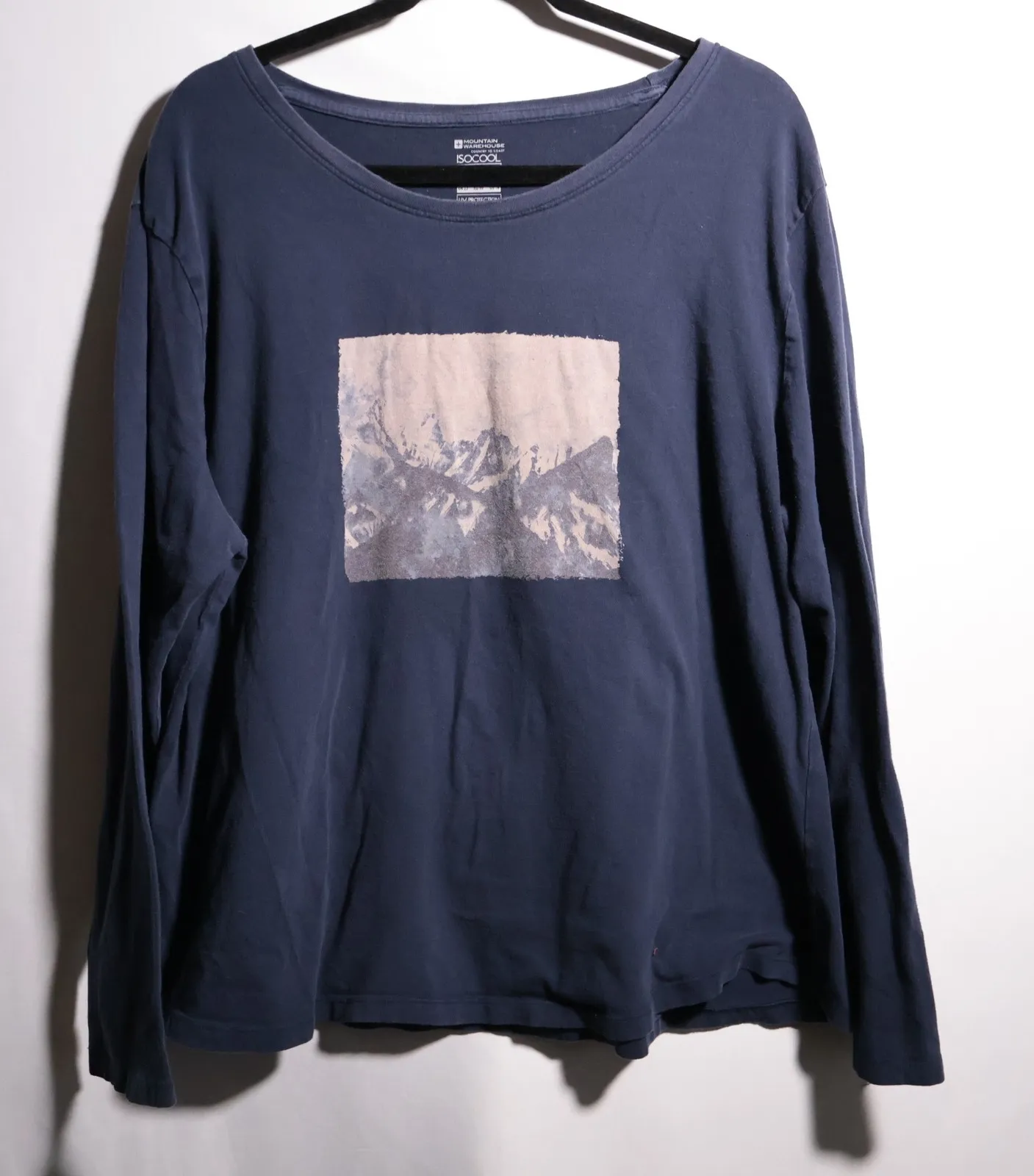 Measurements: • Chest across: 24.5 in • Length: 25 in Keywords: graphic tee, outdoor, hiking, mountains, nature, breathable, quick dry, long sleeve, casual wear, travel, UV protection, activewear UV protection casual outdoor Some wear to fabric. Please see photos for details.