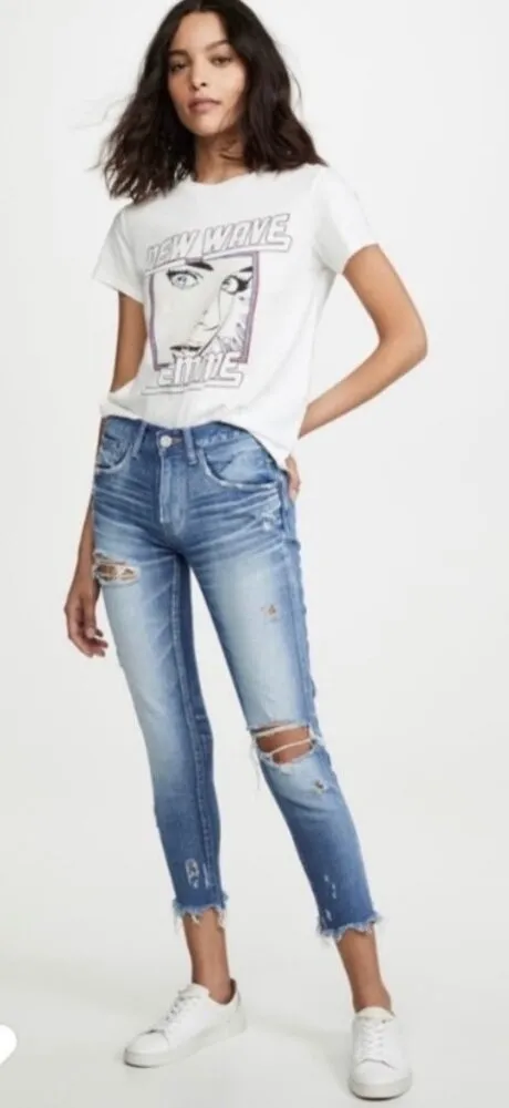 Moussy Vintage Isko Distressed Mid Rise Raw Hem Jeans Designer Ridgewood Blue 26 Excellent Preowned... Show more