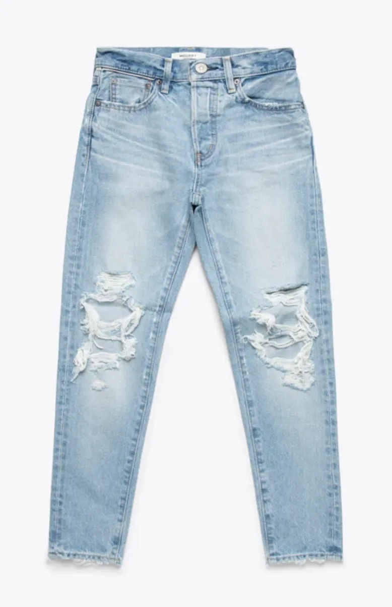 MOUSSY May Vintage Tapered-Mid Denim Light Blue Wash Designer jeans. Size 23. Brand new never worn. retails for $350. Purchased at Nordstrom. This is a steal! Made in Japan, this style from Moussy Vintage is another signature favorite, this time in in a tapered leg with a mid rise fit that sits high on the hip. Significant destruction adds some artful edge to this cool girl denim silhouette in a light blue wash. With classic details like a 5-pocket design, and button, the length is cropped at the ankle to go perfectly with sneakers or heels. Slim fit jeans in light blue wash Mid rise with tapered leg Cropped at the ankle 5-pocket design Button fly Significant destruction at the knee 25.6" inseam, 9" rise 100% Cotton Machine washable