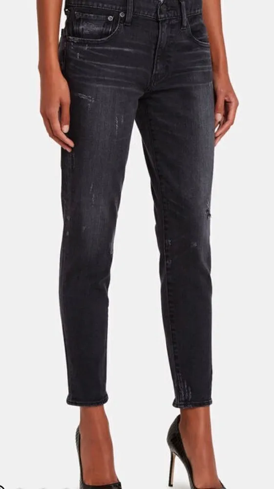 MOUSSY VINTAGE Velma Distressed Skinny Jeans In FADED BLACK SIZE 24 Great condition. No rips, stains or flaws. Gently worn. Crafted in Japan, the label's high-rise Velma skinny jeans are distressed in faded black stretch denim for an authentic worn-in look. Belt loops. Zip fly and button closure. Five pocket styling. Fit Information: High-rise Cropped skinny silhouette Stretch denim Style Number: 025CAC12-1050 VELMA BLK Fabric: 98% cotton, 2% spandex Machine wash cold Made in Japan Model is 5'10" and wearing size 26 Rise: 9" Inseam: 26" Waist Flat: 12.5"
