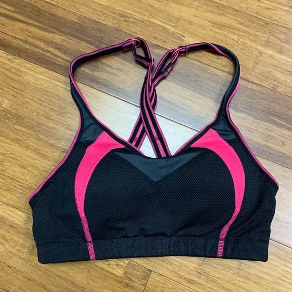 Moving Comfort sports bra designed for impact support. This bra features a stylish cross-back design that not only looks great but also provides enhanced support during workouts. The bra is designed with a comfortable band and strategically placed panels to offer both support and breathability. It also has a hook and eye closure. Keywords: Moving Comfort, sports bra, impact support, cross back, black sports bra, pink sports bra, XS sports bra, TP sports bra, workout bra, fitness bra, activewear, exercise bra, running bra, gym bra, lightly lined, wireless Very good condition, no flaws. Open to offers!