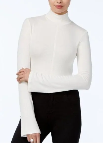 Stylish white crop top with turtleneck from GUESS with flared bell sleeves. Size small 97% rayon 3%... Show more